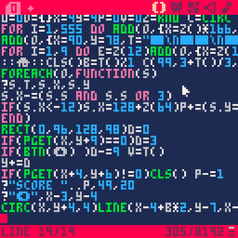 With only 577 characters of code (19 lines) this #pico8 it's the smallest finished game I ve ever done.